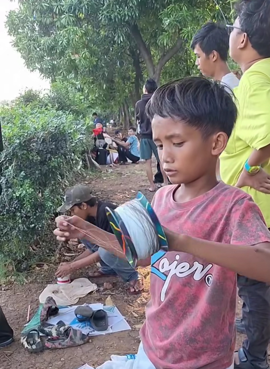 “Lupakan HP, ini baru tantangan sejati!” seolah teriak mereka, ditemani tiupan angin yang genit menggoda layangan untuk terbang lebih liar.